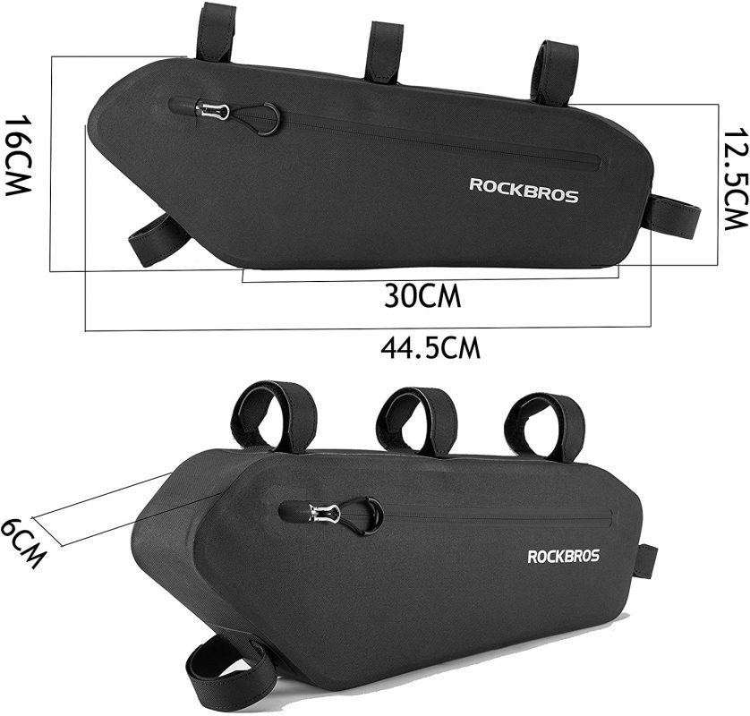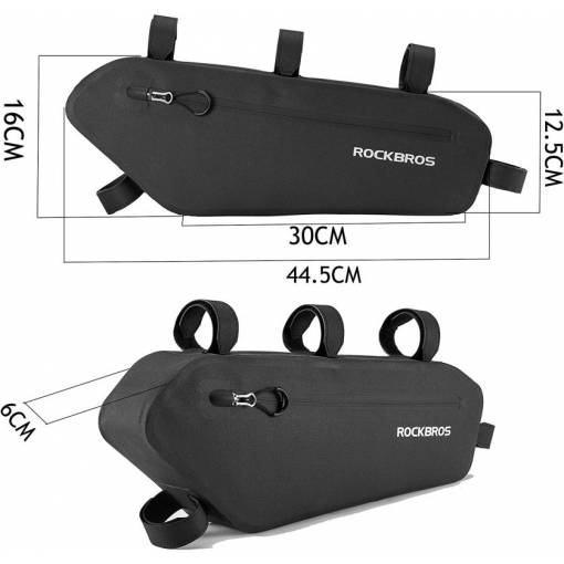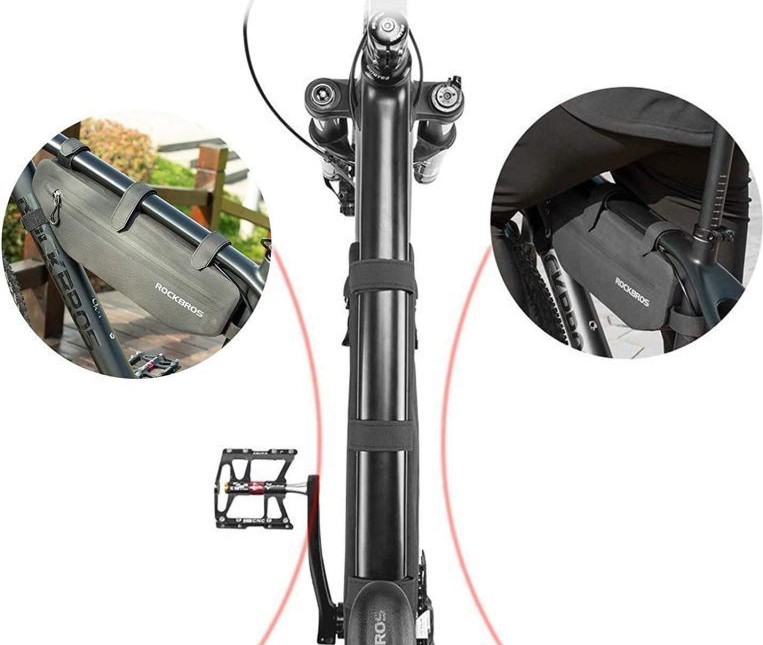 Jednoduchá inštalácia: Pomocou piatich nastaviteľných suchých zipsom tašku pripevníte medzi hornú a sedlovú rúrku kolesa. Vďaka šírke iba 6 cm Vám pri jazde nebude prekážať.