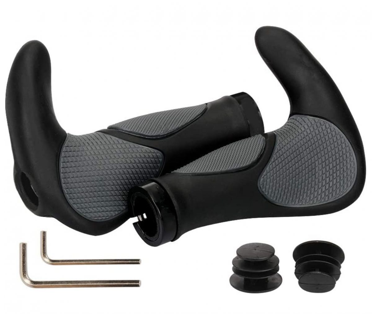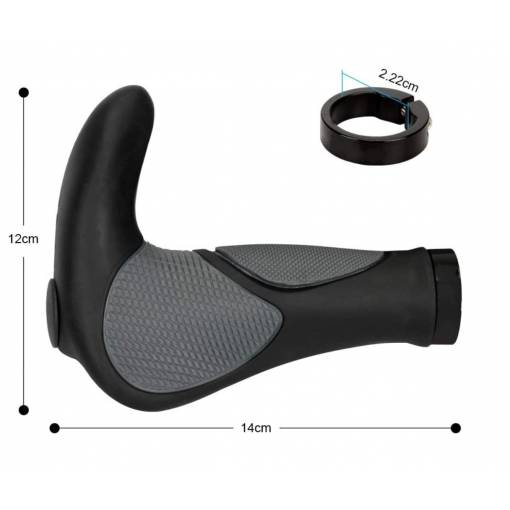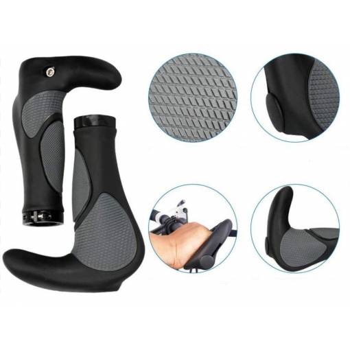 Tieto gripy, čiže rukoväte riadidiel, sú vyrobené z vysoko kvalitnej gumy (TPR), ktorá nedráždi pokožku. Na koncoch majú skrutkovací upínací krúžok s čiernymi zátkami.