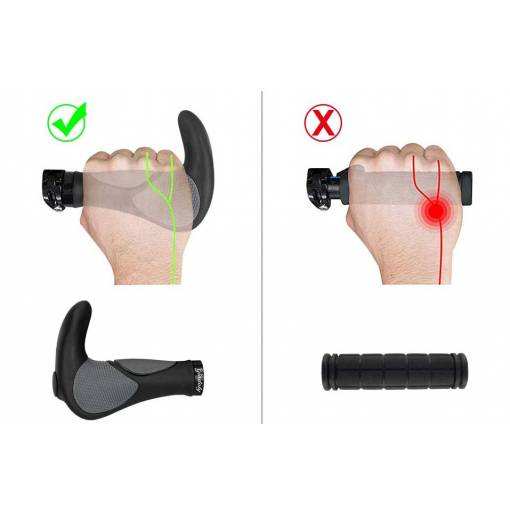 Ergonomické rukoväte riadidiel majú v porovnaní s bežnými rukoväťami väčší povrch a ponúkajú zvýšené pohodlie pri jazde.