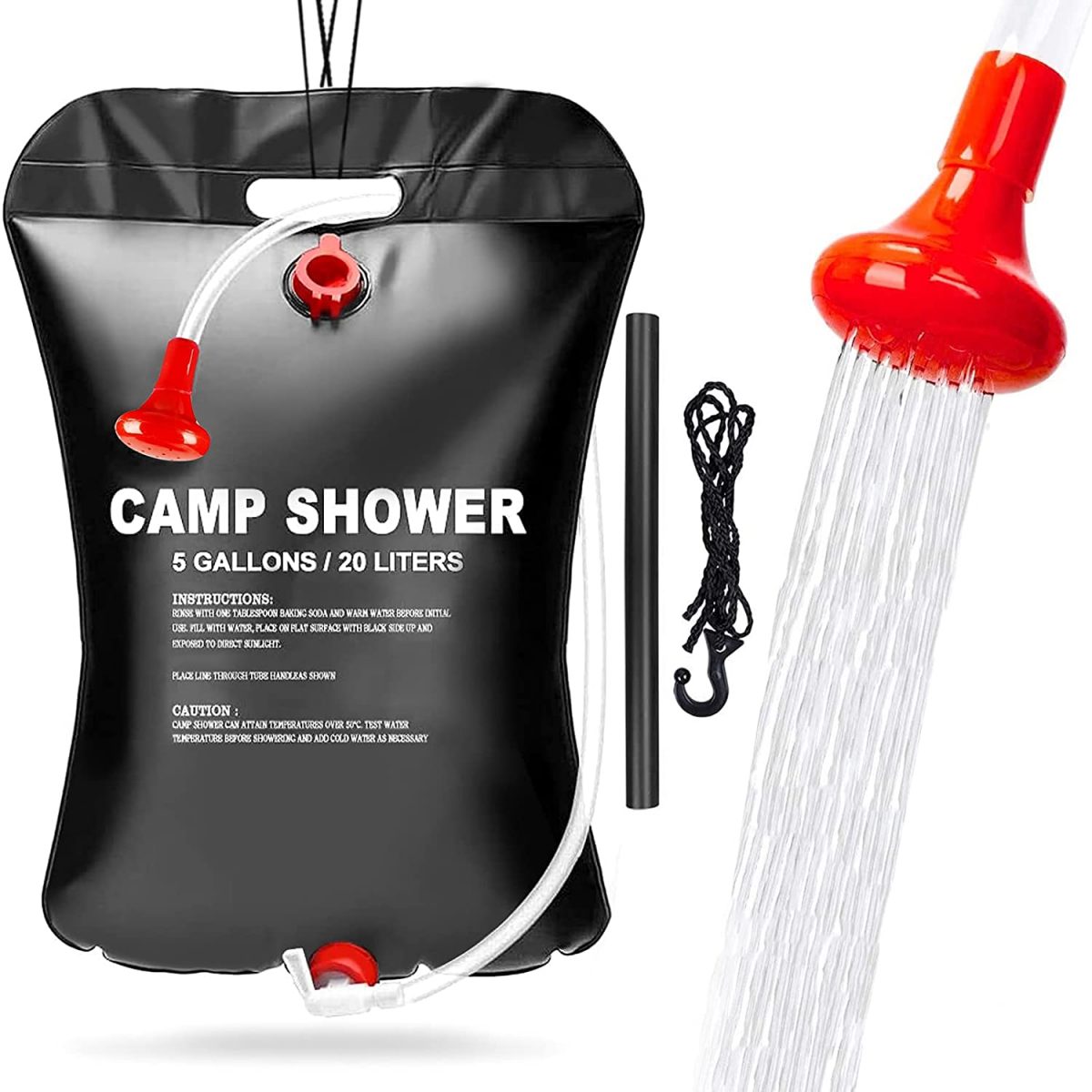 Prenosná a skladacia: Sprchový vak sa dodáva s integrovaným plastovým kohútikom a odnímateľnou sprchovou hadicou a hlavicou.