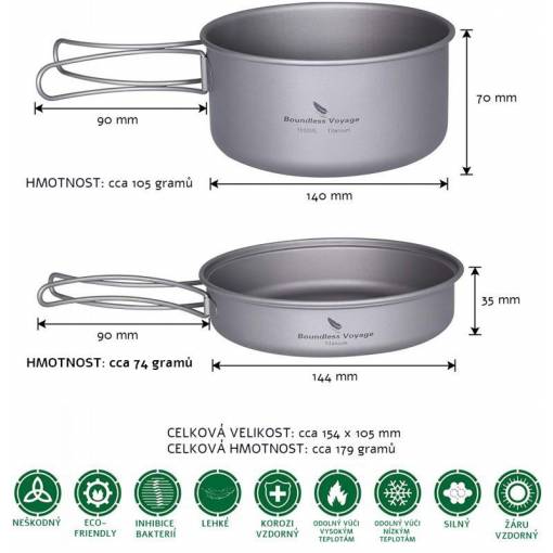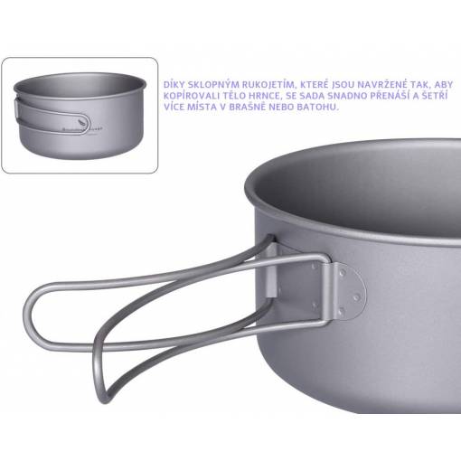 Je preto ideálnym materiálom na výrobu ultraľahkého outdoorového riadu, ako je napríklad tento set hrnca a panvice, ktoré sú do seba ľahko zložiteľné.
