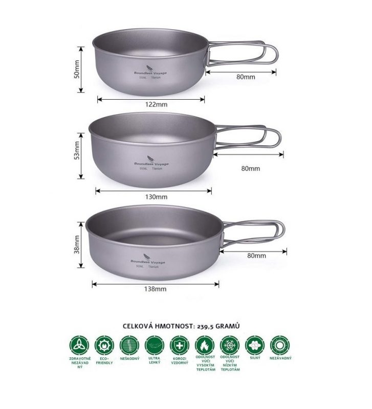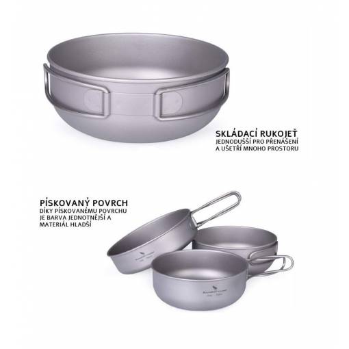 Titánový riad má vysokú odolnosť voči extrémne nízkym aj vysokým teplotám, je vhodný na varenie na plynových varičoch aj v otvorenom ohni.