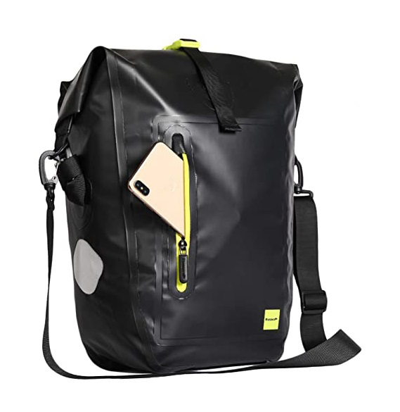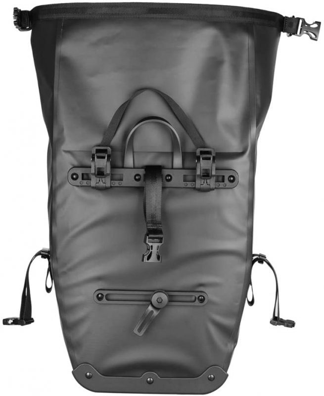 Cyklistická taška na zadný nosič kolesa je vyrobená z kvalitnej polyesterovej tkaniny 1000D potiahnutej polyuretánovou fóliou.