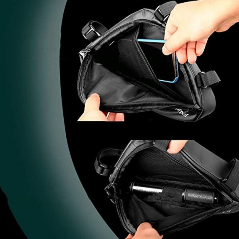 Praktická taška do rámu kolesa je vyrobená z 600D polyesteru, ktorý vyniká dlhou životnosťou a jednoduchou údržbou.
