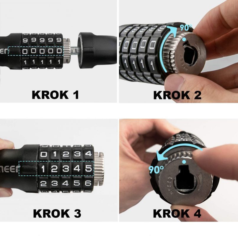Päťmiestny číselný zámok: Tento zámok na bicykel ponúka pokročilý 5-miestny číselný zámok, čo umožňuje zvoliť kód z až 100 000 možných číselných kombinácií.
