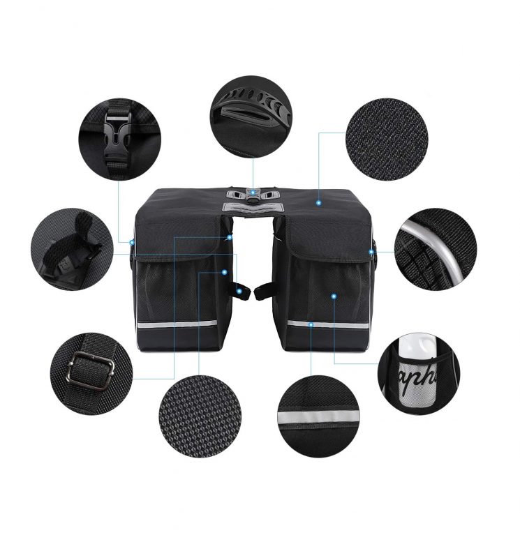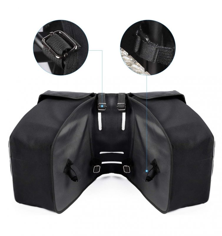 Zosilnené upevňovacie popruhy zaisťujú pevné prichytenie, vďaka tomu držia taška bezpečne na mieste a nepadá z bicykla.