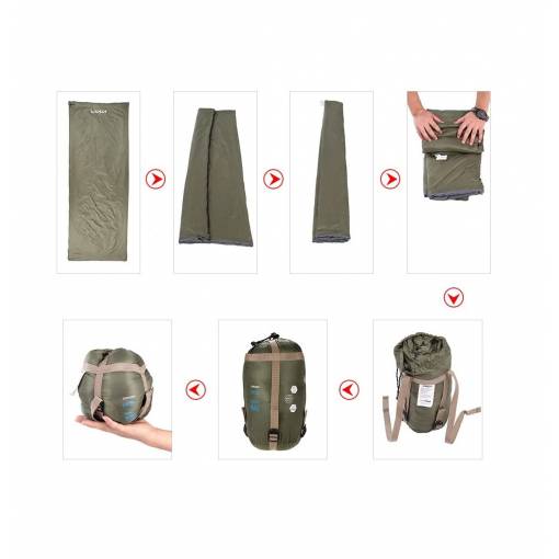 Kvalitné materiály: Vonkajšia strana spacieho vaku je vyrobená z nylonovej tkaniny 320D, ktorá je vodotesná a priedušná, zároveň aj pevná a odolná proti pretrhnutiu.