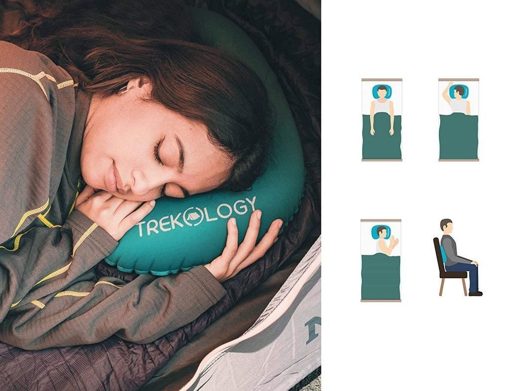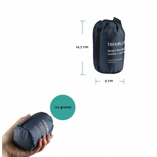 Nafukovací vankúš Trekology vyniká svojim ergonomickým dizajnom, kompaktnými rozmermi (12,6 x 5 cm) a nízkou hmotnosťou (110 gramov).