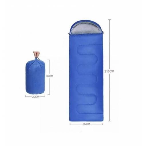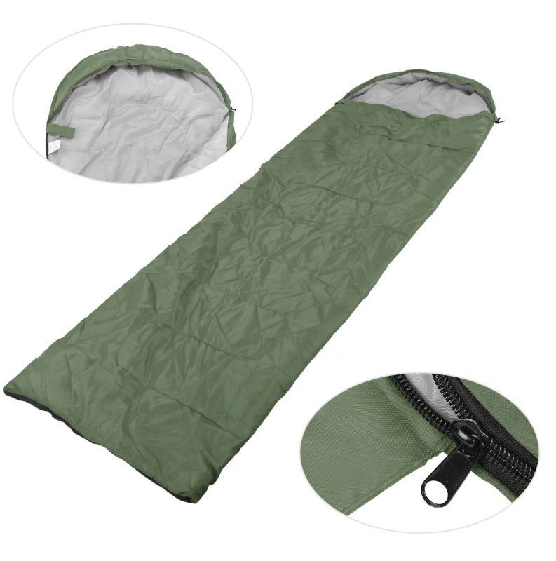 Tento ľahký spací vak je vyrobený z odolného, vodoodpudivého polyesteru 170T. Náplň z dutého bavlneného vlákna s hustotou 100g/m² Vás udrží v teple a pohodlí.