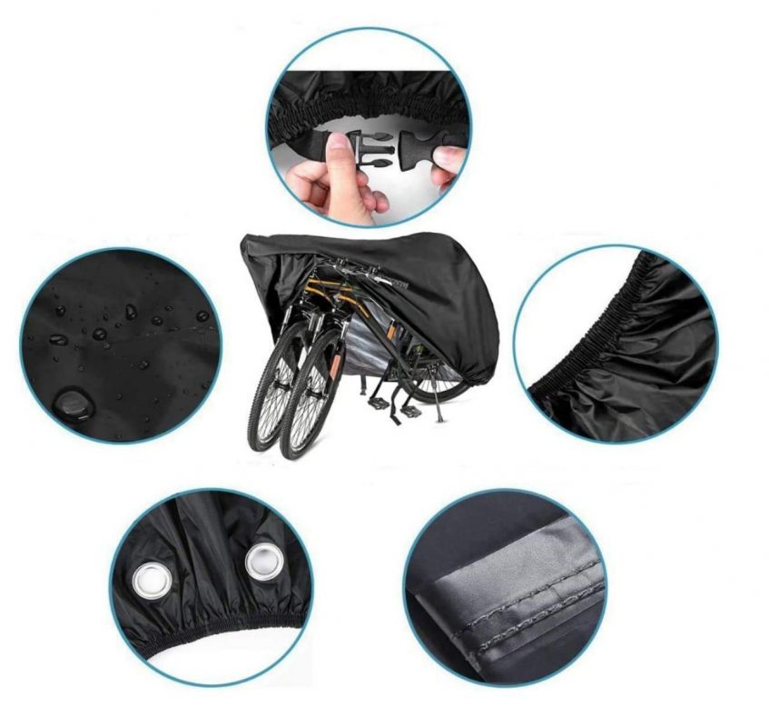 Krycia plachta z materiálu Oxford 210D s povrchovou úpravou z polyuretánu ochráni Váš bicykel pred dažďom, snehom aj slnečným žiarením.