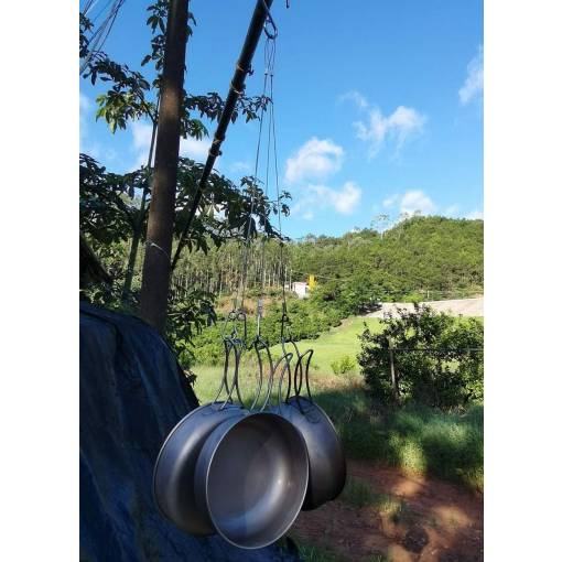 Závesné outdoorové háčiky z ušľachtilej ocele na zavesenie grilovacieho roštu alebo iného campingového riadu pri Vašom varení v prírode.