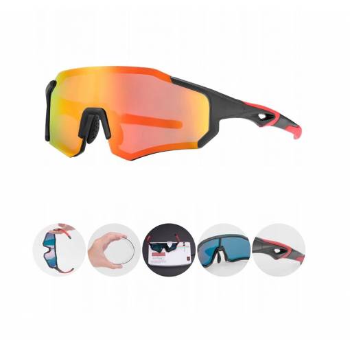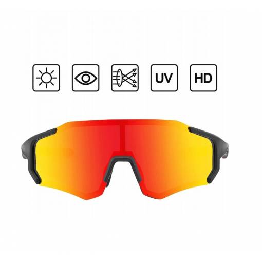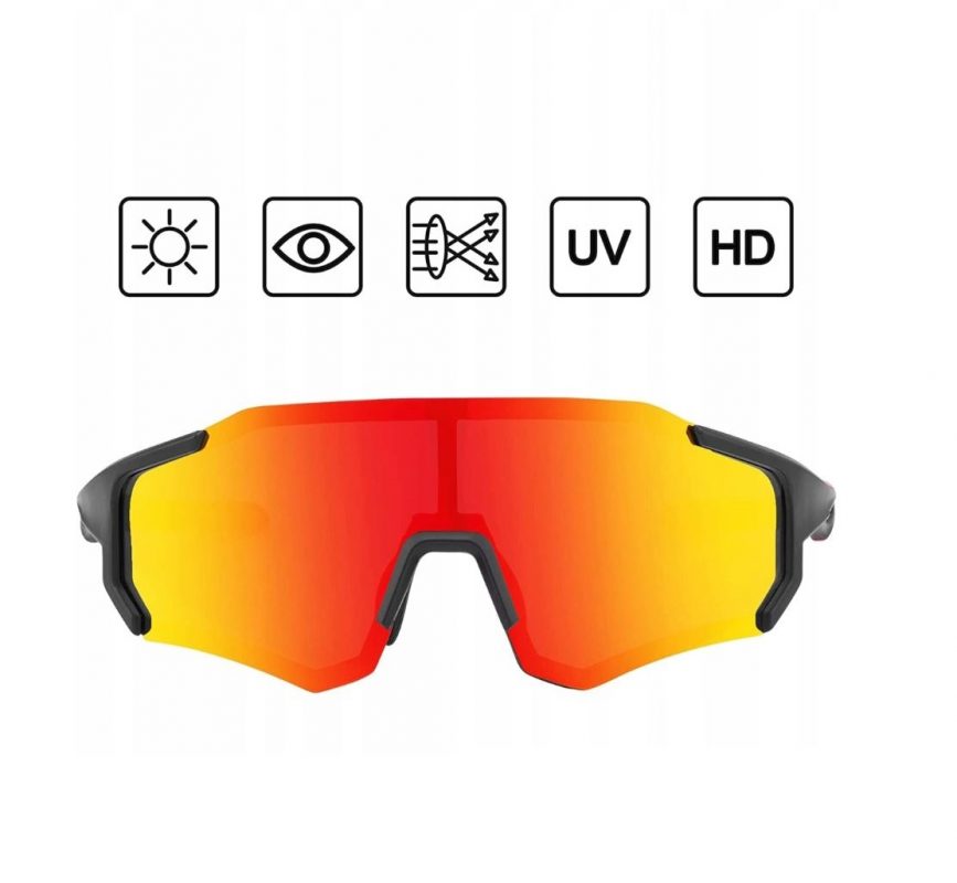 Ochrana UV400: Tieto slnečné okuliare sa pýšia 100% ochranou UV400 a farebným zrkadlovým povlakom, ktorý odpudzuje vodu a nečistoty. Široké šošovky poskytujú nielen väčšie zorné pole, ale taktiež chránia Vaše oči pred vetrom, prachom a hmyzom. Majú minimálny odpor vzduchu, preto sú vhodné na rýchlu jazdu ako za slnečného, tak oblačného počasia.