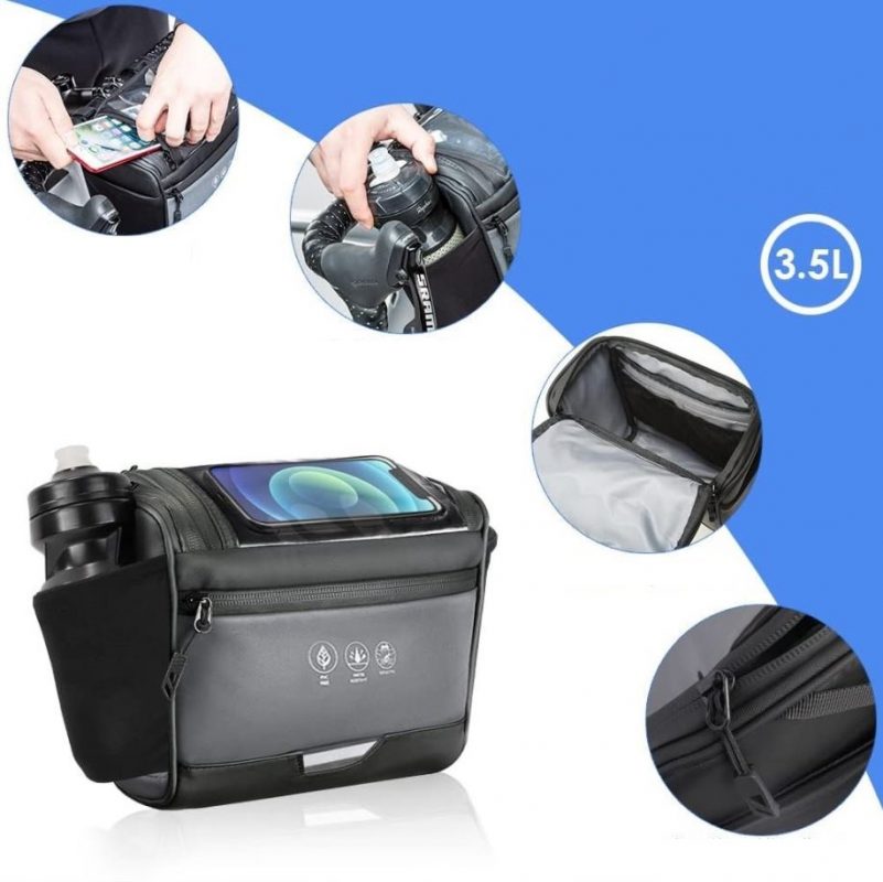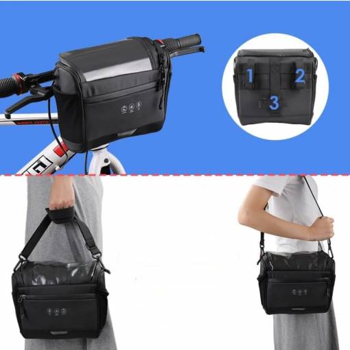 Praktická taška s objemom 3,5 litra na riadidlá bicykla pojme všetky nevyhnutnosti. Po pripnutí priloženého popruhu sa dá navyše nosiť aj ako taška cez rameno.