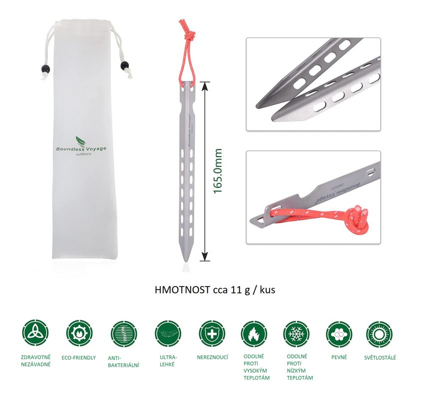 Balenie obsahuje 6 kusov ultraľahkých titánových kolíkov.