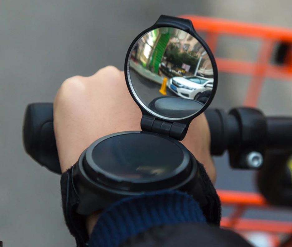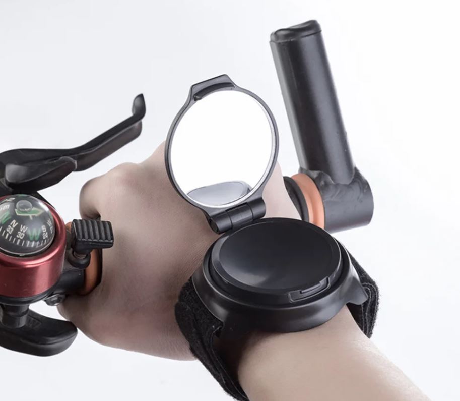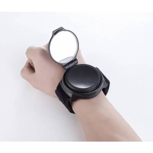 Spätné zrkadlo s nastaviteľným remienkom na suchý zips upevníte okolo zápästia ako hodinky.