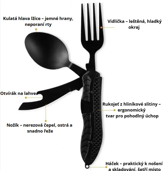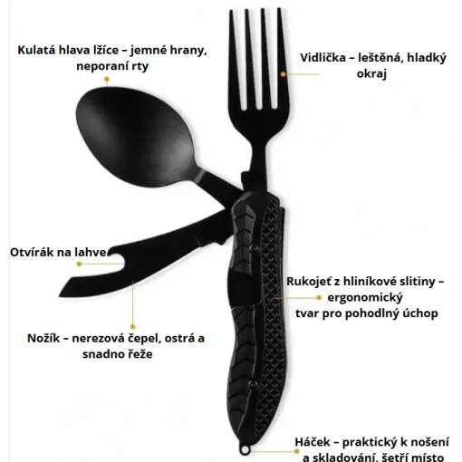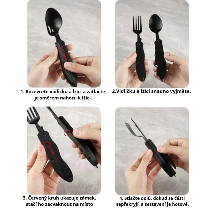 Objavte praktický skladací príbor 3 v 1 z kvalitnej nerezovej ocele, ktorý sa zmestí do každej vrecka i batohu.