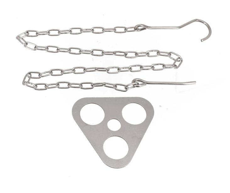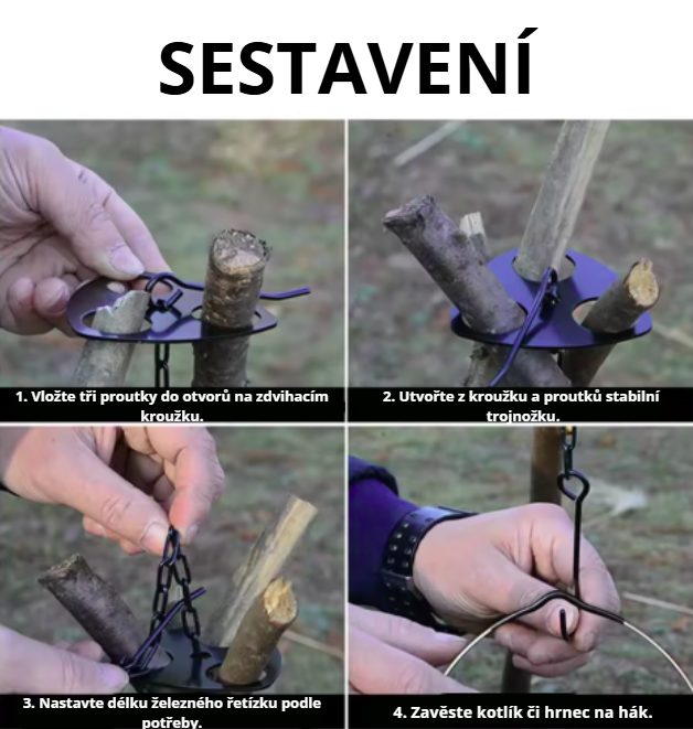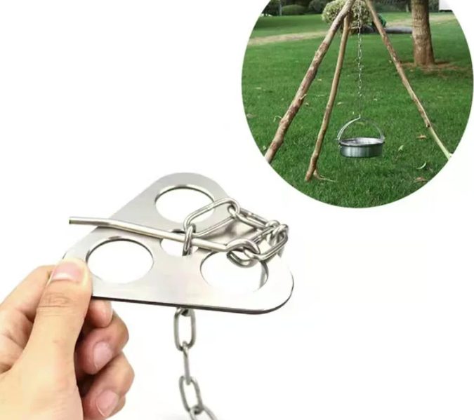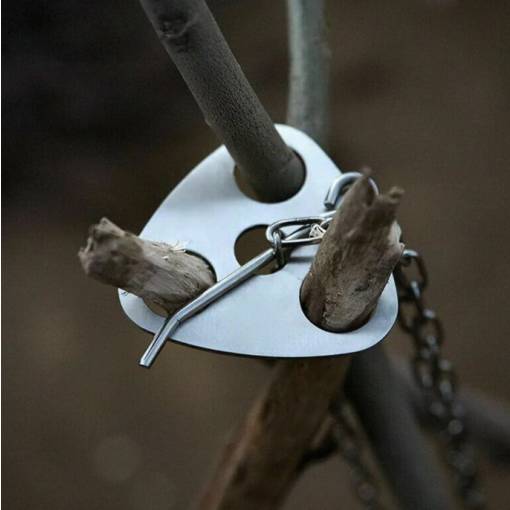 Praktický, nastaviteľný reťazec s karabinou umožňuje jednoduché a presné ovládanie výšky zavesenia kotlíku či hrnca nad ohňom, takže máte dokonalú kontrolu nad intenzitou ohňa a teplotou varenia.