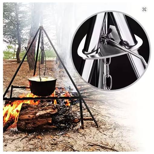 Robustná trojnožka zaručuje stabilitu aj na nerovnom teréne, zatiaľ čo nerezová oceľ odoláva všetkým poveternostným vplyvom a ľahko sa čistí. Ať už pripravujete čokoľvek, táto trojnožka vám poskytne maximálny komfort a spoľahlivosť.