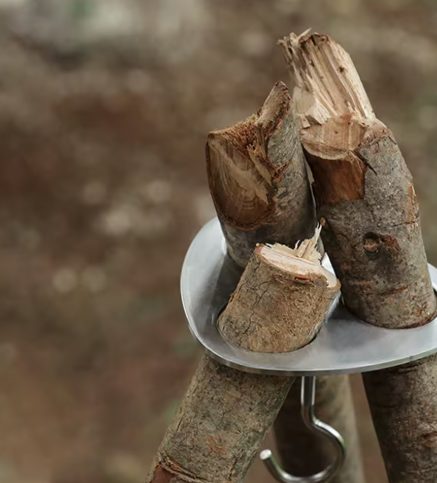 1.Rozložíte tri vetvy do stabilného trojuholníkového stojanu na rovnej ploche poblíž ohniska.