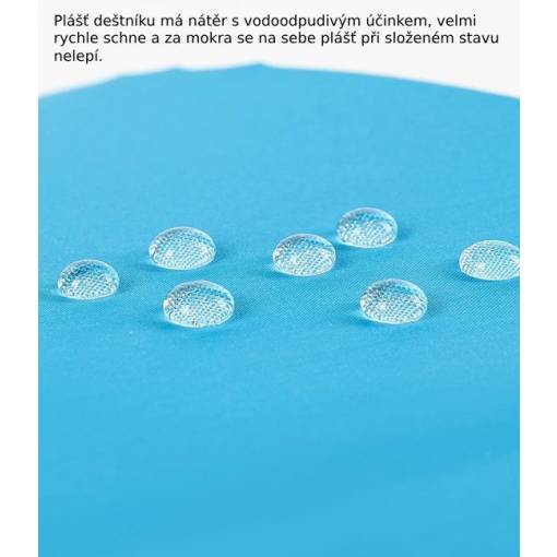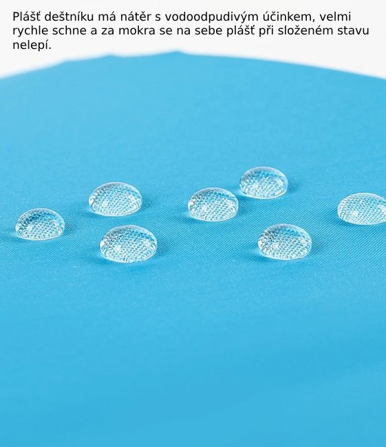 Plášť dáždnika je vyrobený z kvalitného polyesteru, čo je materiál známy svojou odolnosťou voči poveternostným vplyvom, rýchlym schnutím a dlhou životnosťou. Tento materiál tiež dobre odoláva vyblednutiu farieb pri vystavení slnečnému svetlu.
