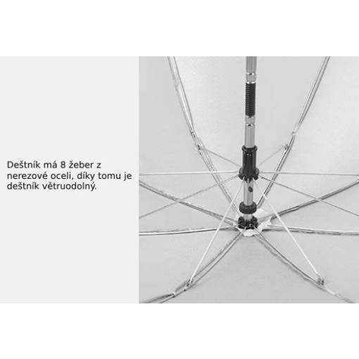 Dáždnik je vybavený konštrukciou z nerezovej ocele, ktorá je veľmi odolná voči korózii, čo zaisťuje dlhú životnosť aj pri častom používaní vo vonkajších podmienkach.