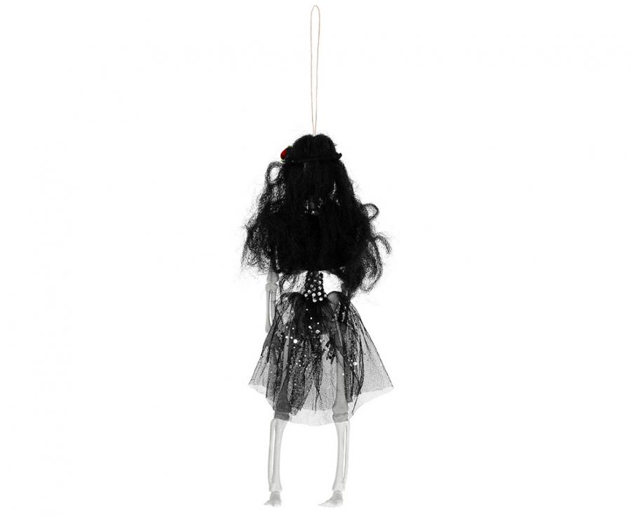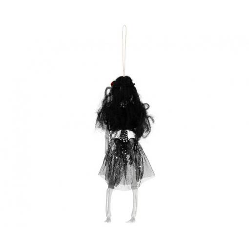 Vytvorte doma tú správnu strašidelnú atmosféru s originálnou závesnou dekoráciou. Figurína má čierne šaty s tylovou sukňou. Vo vlasoch má farebnú kvetinu, čo dodáva dekorácii neobyčajný a zároveň desivý vzhľad.