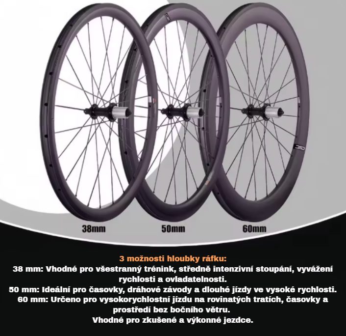- Materiál ráfku: vysokomodulový karbon