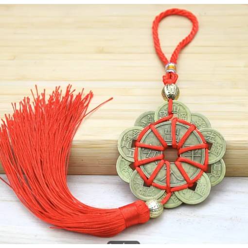 Staré čínske mince: Mince majú guľatý tvar (symbol Nebe) s štvorcovým otvorom uprostred (symbol Zeme) – dohromady tvoria harmóniu medzi duchovným a hmotným svetom. V tradičnom Feng Shui predstavujú peniaze, hojnosť a prosperitu. Sú replikami mincí z dôb čínskych cisárov, kedy boli používané ako platidlo aj ochranný symbol. Umietnené do kruhu (kvetu) vytvárajú cyklus neustáleho toku energie a bohatstva.