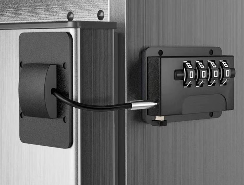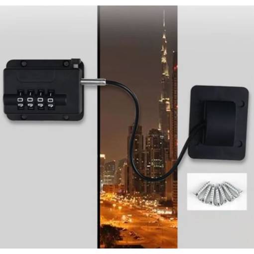 Zámok je vybavený čtyřmiestnym číselným kódom, ktorý zabezpečuje spoľahlivú ochranu bez nutnosti kľúča. Vďaka snadnej inštalácii bez vŕtania, odolnej konštrukcii a možnosti pre nastavenie kódu je ideálnym riešením pre každý domov.