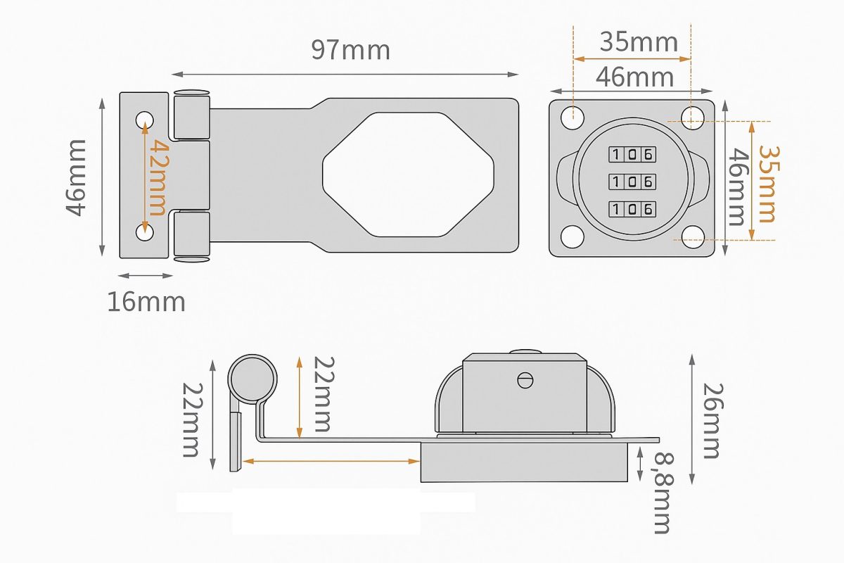 Třicíslený mechanický zámok z kvalitnej zinkovej zliatiny je ideálnym riešením pre bezpečné uzamykanie zámkov, skriniek a kovových boxov bez nutnosti kľúča.