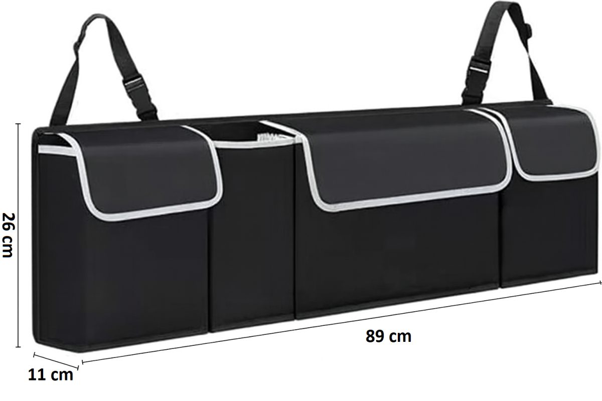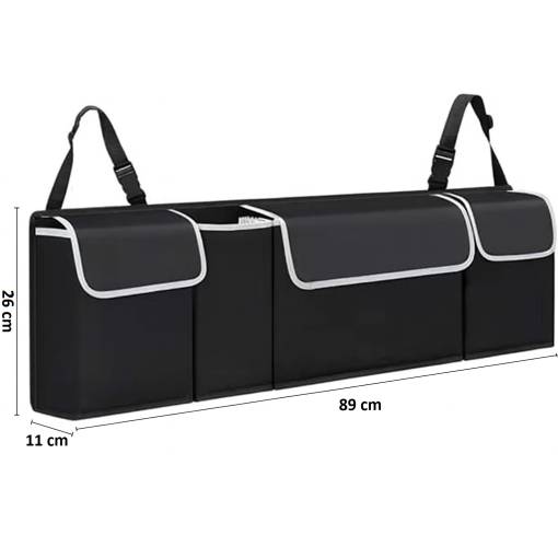 Organizér ponúka dostatok úložného miesta pre všetky nevyhnutnosti – od autokozmetiky a náradia až po hračky, nákupy alebo potrebné drobnosti na cestách.
