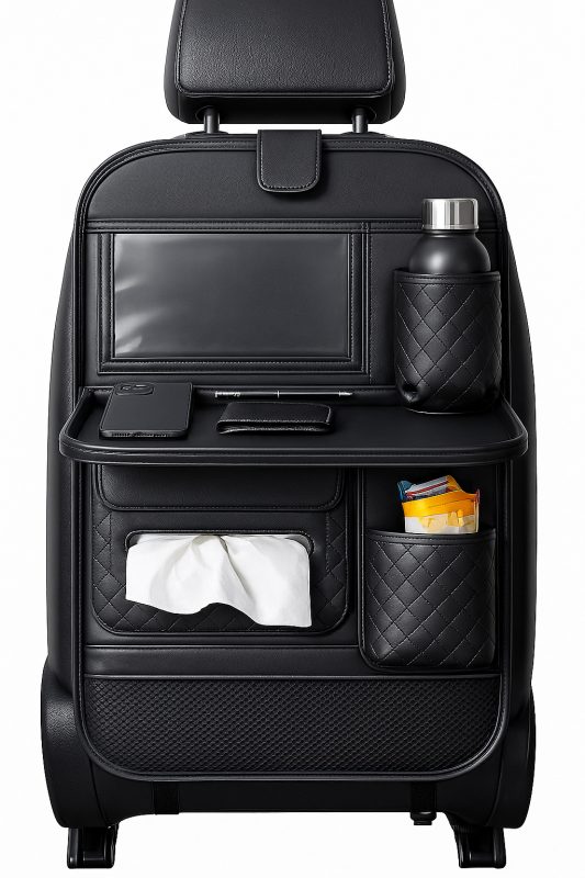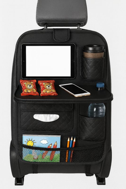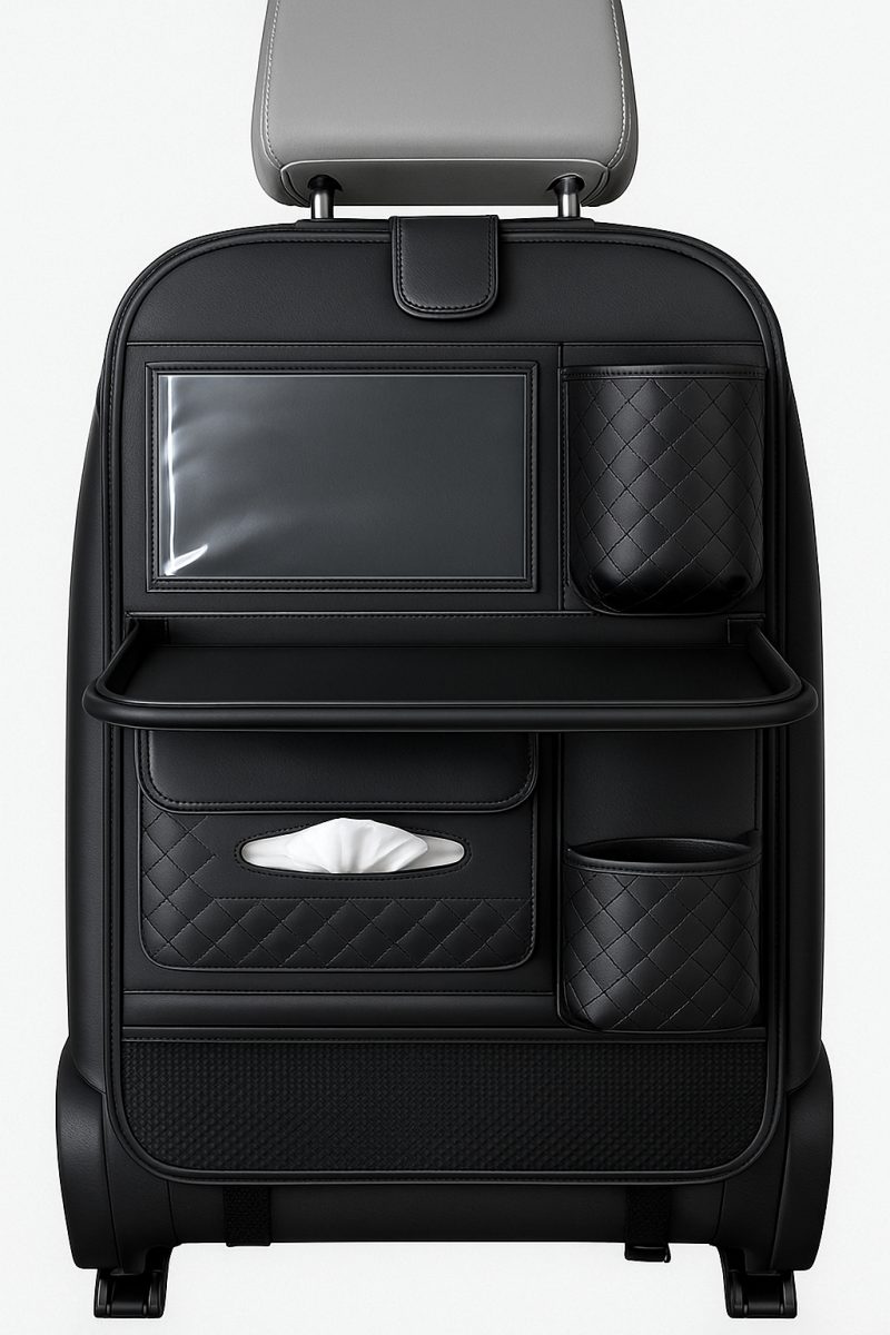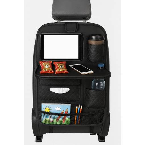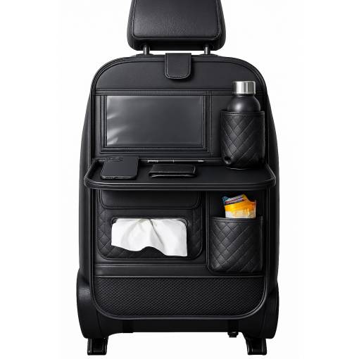 Tento viacúčelový závesný organizér na zadnej strane autosedačky poskytuje prehľadné uloženie vecí na cestách. Vďaka premyslenému rozloženiu vreciek je možné ľahko uložiť fľaše, obrúsky, tablet, telefón, drobnosti, hračky, časopisy či ďalšie cestovné potreby. Umožňuje tak udržať interiér vozidla čistý a organizovaný.