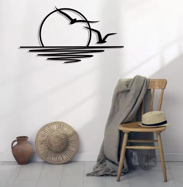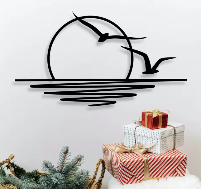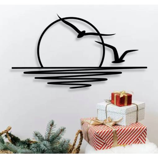 Vneste do svojho domova pokoj, voľnosť a nádych letnej atmosféry vďaka tejto minimalistickej kovovej dekorácii zobrazujúcej západ slnka nad morskou hladinou. Jemné línie a silueta vtákov v lete vytvárajú harmonický obraz, ktorý pôsobí upokojujúcim a elegantným dojmom. Precízny laserový výrez vytvára pôsobivý a ľahký dizajn, ktorý na stene pôsobí téměř ako kresba – čisto, moderne a pritom s nádychom nežnosti.