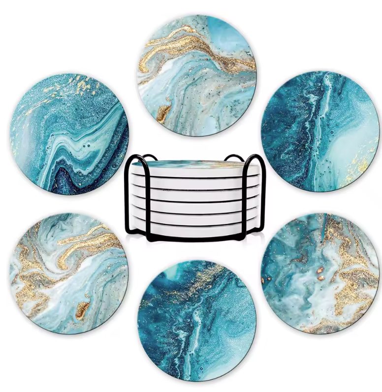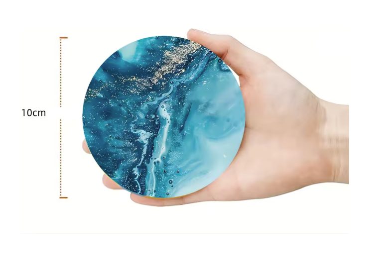 Dodajte svojmu stolu štýl a eleganciu s touto sadou keramických podtáckov v modernom modrom mramorovom dizajne. Podtácky nielen skvele vyzerajú, ale zároveň spoľahlivo chránia váš nábytok pred škvrnami, vlhkosťou a poškriabaním.