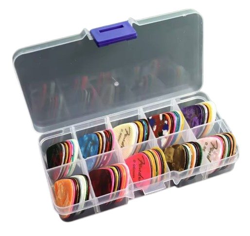 Priehľadný plastový box umožňuje rýchlu orientáciu v obsahu a zároveň chráni trsátka pred poškodením či stratou. Skvelé riešenie na doma, do skúšobne aj na koncerty.