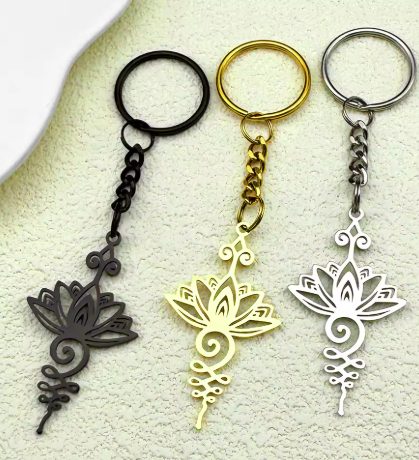 Dodajte svojim kľúčom štýl a hlbší význam. Tento elegantný kovový prívesok v tvare lotosového kvetu symbolizuje čistotu, silu a nový začiatok. Minimalistický dizajn v striebornom prevedení z neho robí dokonalý doplnok pre každodenné použitie aj originálny darček.