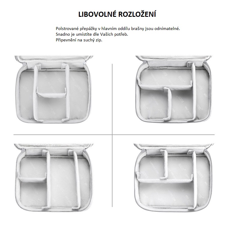 Taška na príslušenstvo je ušitá z nepremokavej tkaniny, organizuje príslušenstvo a zabraňuje jeho zamotaniu.
