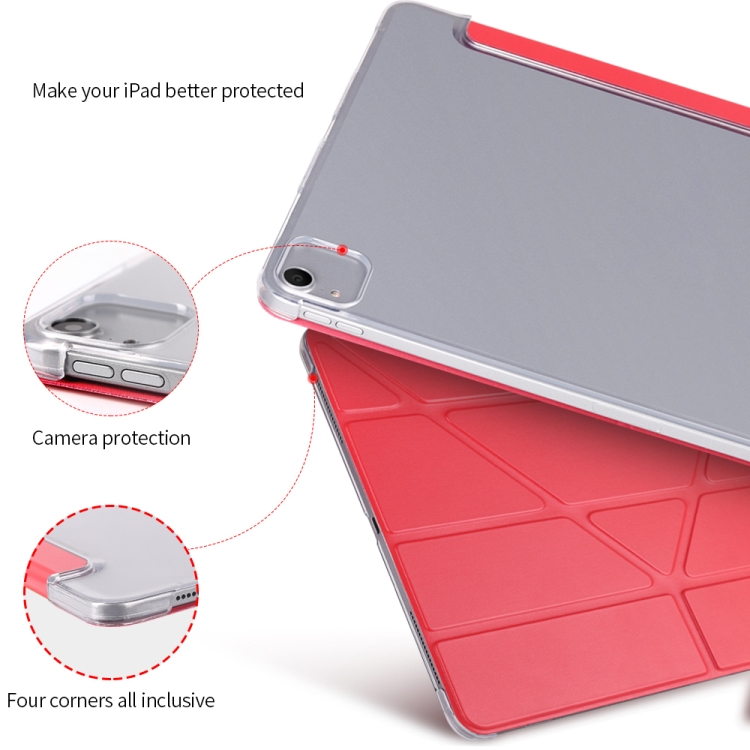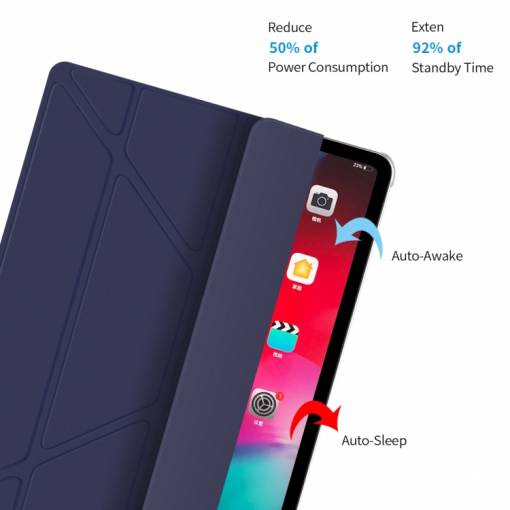 Kryt prináša zariadenie neprerušitú ochranu. V prípade pádu je náraz zmiernený pružným materiálom, zároveň predchádza odreninám a ďalšiemu poškodeniu. Kryt chráni celú zadnú časť tabletu vrátane bokov, v ktorých sú výrezy na tlačidlá, reproduktory, slúchadlá a nabíjací konektor na pripojenie nabíjačky. Predné veko disponuje funkciou Smart Cover, takže je k dispozícii automatické prebudenie/uspaním Apple tabletu; pre komplexnú ochranu je vhodné prikúpiť aj tvrdené sklo, ktoré chráni displej pred poškriabaním a prasklinami.